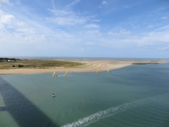 Nous profitons du viaduc du 15 Août pour faire un tour chez les potes de St-Gilles et par la même occasion pour faire l’étape sautée en avril pour cause de mauvais temps. Nous partons à l’aube de Massy et arrivons à Pornic vers midi. Le temps n’a pas changé depuis notre dernier passage, c’est gris et il y a un bon vent!!!!!! Nous partons confiant.